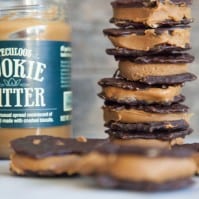 Once chilled, place about 2 tablespoons on butter on one pretzel thin and sandwich another pretzel on top. Put the entire Chocolate Covered Pretzel Cookie Butter Sandwich in the freezer for about 10 minutes before eating. Repeat the process with the remaining pretzels and cookie butter.