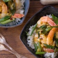 Serve a few pieces of the shrimp over a spoonful of rice immediately.