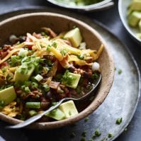 - Shredded Cheddar Cheese Scallions, Diced Avocado, Sour Cream, Cilantro or Chives