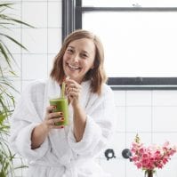 Combine everything in a high powered blender and blend for 2-3 minutes until completely smooth and the chia seeds are finely ground. Serves 2.