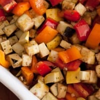 Place the veggies into the marinade and mix to combine. Bake for 30-35 minutes until the vegetables are tender and then remove from the oven. Serve as a side dish or over quinoa or pasta.