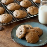 Once chilled scoop 3 tbsp scoops of the dough onto the baking sheets, 12 cookies per sheet. Bake for 16 minutes and remove from the oven. Let the cookies cool for a few moments on the baking sheets before transferring to a cooling rack. Repeat the process with any remaining dough.