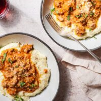 These incredibly delicious Sausage Ragu Polenta Bowls are ready in under 30 minutes but are SUPER impressive!!