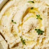 Season to taste with salt and pepper. Transfer polenta to a serving bowl. Top with extra parmesan, and tons of freshly cracked black pepper. Garnish with fresh thyme.