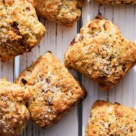 These cheesy, herby biscuits make the perfect addition to any brunch menu! Serve them warm with room temperature butter, or slice them down the middle and turn them into breakfast sandwiches!