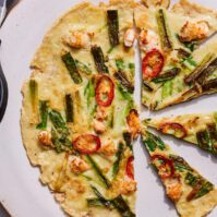 This Scallion Pancake comes together in just 20 minutes and can be made with all kinds of seafood. Feel free to mix it up to your preference or go vegetarian and add in your favorite veggies.